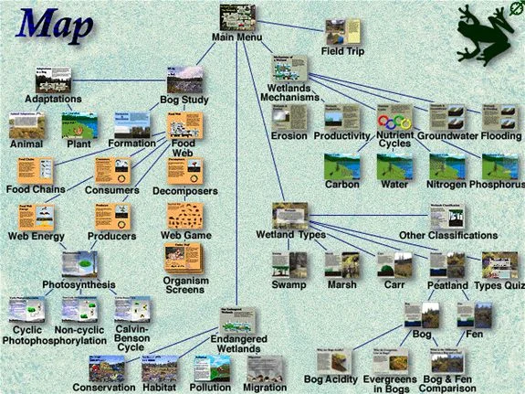 The five modules, Field Trip, Study of a Bog, Wetlands Types, Mechanisms of a Wetland and Our Endangered Wetlands are integrated into one fully interactive learning tool.